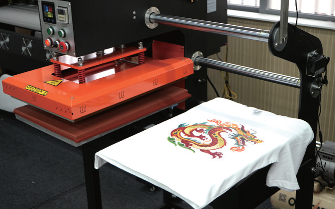The printed film will transfer the bonded ink and heatpress glue with specific pressure and heat.